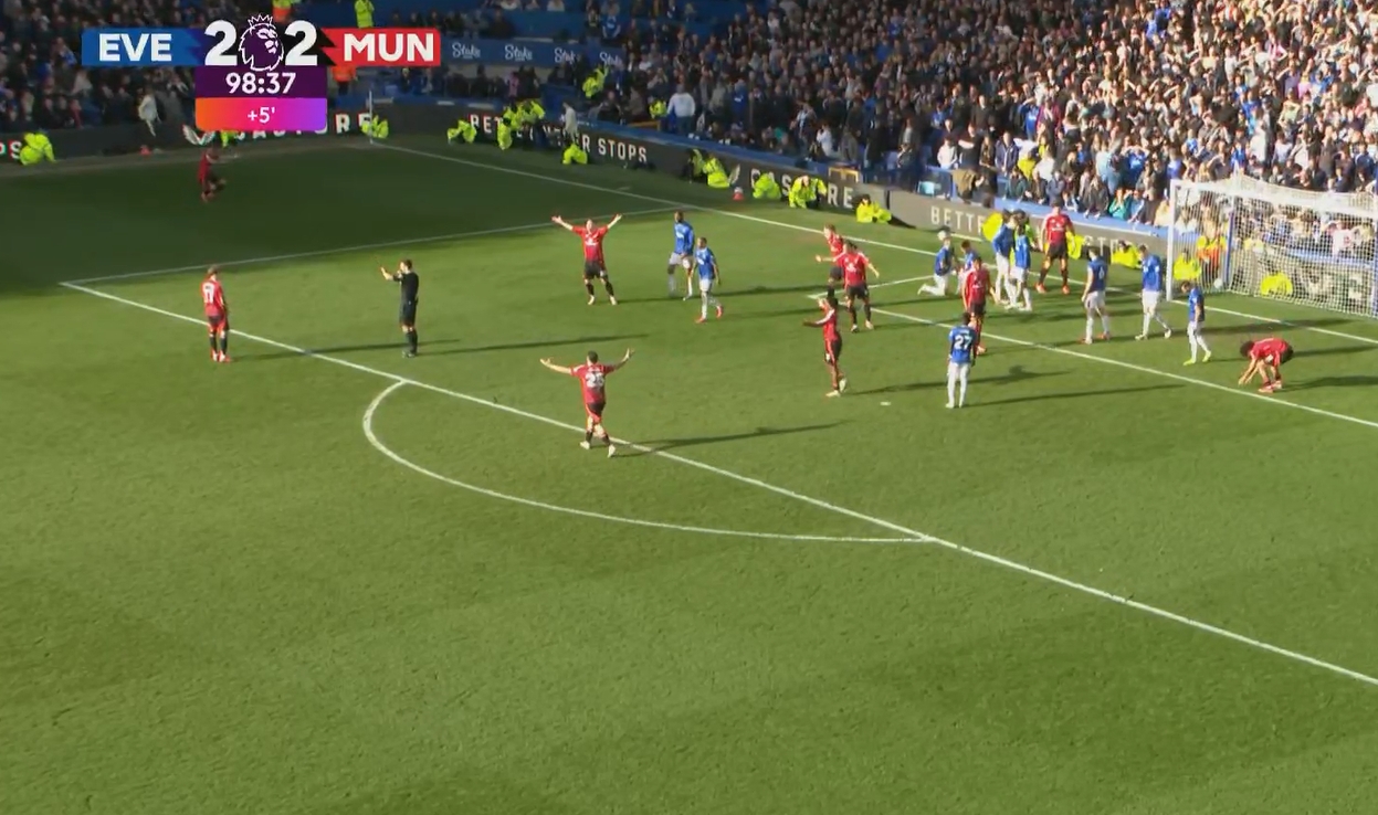 最后時(shí)刻球被埃弗頓碰出底線(xiàn) 裁判沒(méi)給角球&曼聯(lián)球員集體舉手抗議