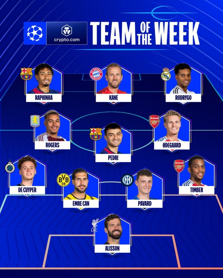 后衛:德庫耶佩(布魯日)、埃姆雷-詹(多特)、帕瓦爾(國米)、廷伯(阿森納)