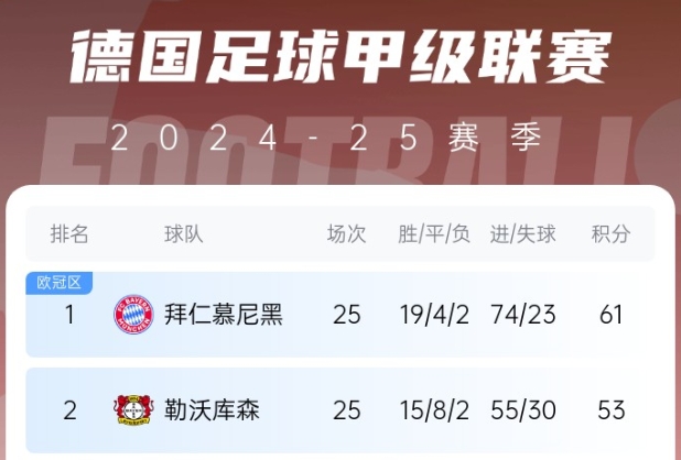 德甲第25輪,拜仁主場(chǎng)2-3不敵波鴻。這給了排名第二的勒沃庫森追分的機會(huì )。